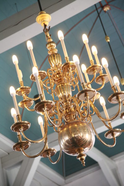 Omdat er ook avonddiensten gehouden werden, was verlichting noodzakelijk, Na de herbouw schonken meerdere, ingezetenen een kroon en uiteindelijk kwamen er zes te hangen, alle voorzien van echte kaarsen daardoor kostte het aansteken in die tijd waarschijnlijk erg veel werk.